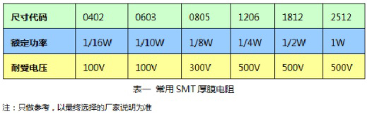 如下所示表一是比較常見SMT厚膜電阻器的參數(shù),終選型時(shí)需與選購(gòu)器件的廠家核實(shí)(此表來源于網(wǎng)上):