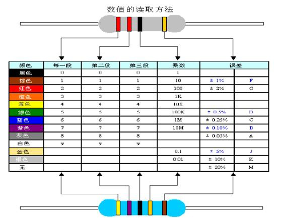 1、允許誤差:標(biāo)稱電阻值(指電阻器上所標(biāo)示的電阻值)與實(shí)際電阻值的差值跟標(biāo)稱電阻值之比的百分?jǐn)?shù)稱電阻值偏差,它表達(dá)電阻器的精度。允許誤差與精度等級(jí)對(duì)應(yīng)關(guān)系如下所示:±0.5%-0.05、±1%-0.1(或00)、±2%-0.2(或0)、±5%、±10%、±20%?。?