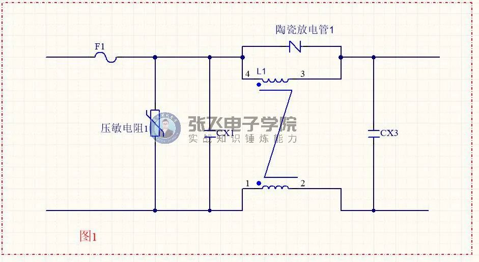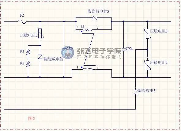 共模電感上并聯(lián)陶瓷放電管與L相與N相對(duì)大地跨接壓敏電阻串陶瓷放電管一樣的作用,有時(shí)可能只會(huì)出現(xiàn)一組電路。作用都時(shí)用來(lái)防共模雷擊。(文章源于張飛電子學(xué)院,如有侵犯,煩請(qǐng)告知)