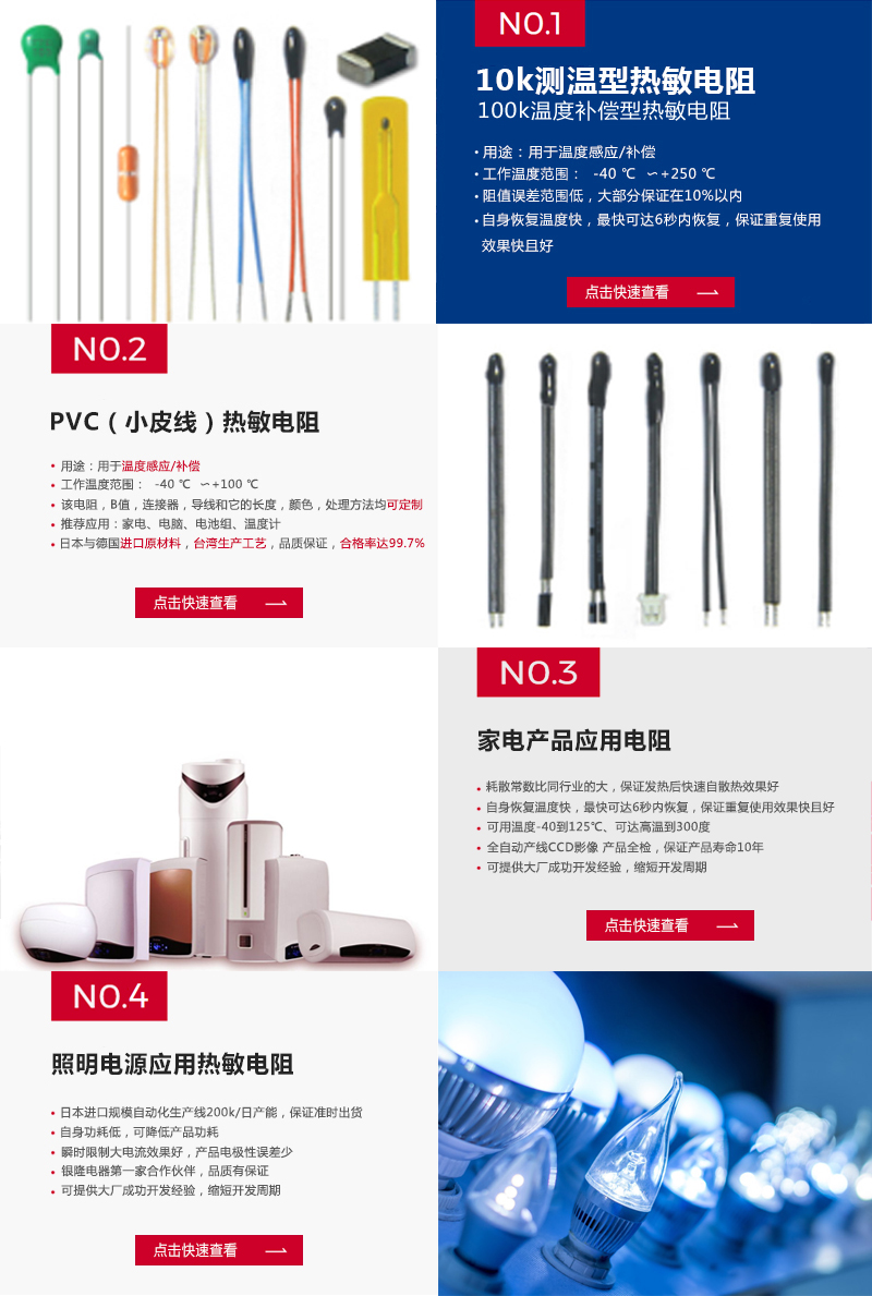 主營產(chǎn)品: 熱敏電阻,NTC熱敏電阻,貼片熱敏電阻