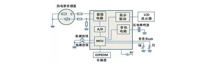 紅外溫槍核心芯片主要由ADC芯片和控制芯片設(shè)計組成,可實現(xiàn)按鍵控制、LCD顯示、電量檢測等功能。