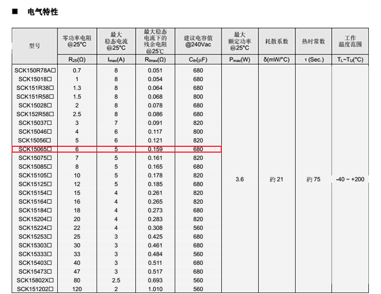 系列 D Lmin. d P Amax. Tmax. W SCK15 16.5 29 1.0±0.02 7.5±1 16.5 請(qǐng)見(jiàn)電氣特性表 請(qǐng)見(jiàn)電氣特性表