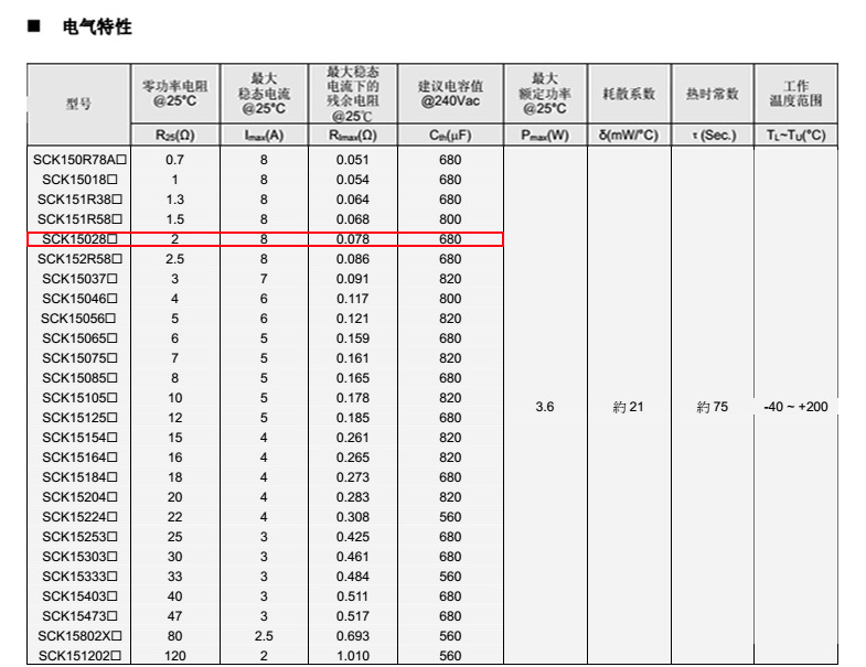 系列 D Lmin. d P Amax. Tmax. W SCK15 16.5 29 1.0±0.02 7.5±1 16.5 請(qǐng)見(jiàn)電氣特性表 請(qǐng)見(jiàn)電氣特性表