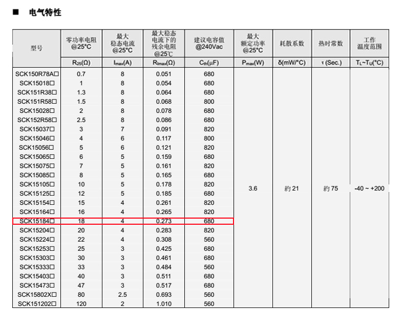 熱敏電阻: 穩(wěn)騰 熱敏電阻型號(hào): SCK15184MSY 熱敏電阻片徑: Φ15mm 零功率電阻@25℃: 18Ω 工作溫度范圍: -40℃±200℃ 儲(chǔ)存溫度范圍: -40℃±85℃