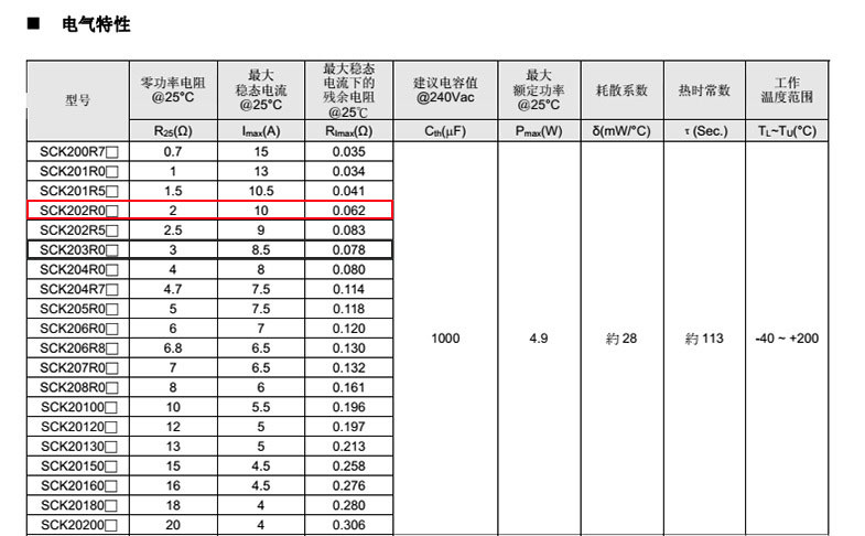 熱敏電阻: 穩(wěn)騰 熱敏電阻型號(hào): SCK202R0MSBY 熱敏電阻片徑: Φ20mm 零功率電阻@25℃: 2Ω 工作溫度范圍: -40℃±200℃ 儲(chǔ)存溫度范圍: -40℃±85℃