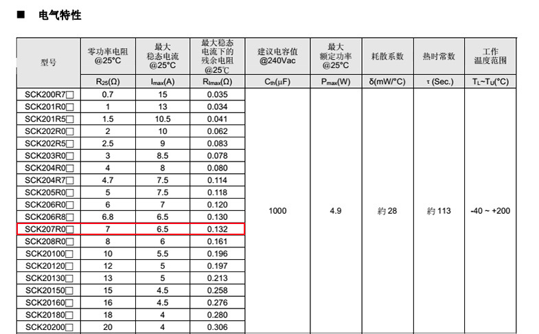 系列 D Lmin. d P Amax. Tmax. W SCK20 21.5 26 1.0±0.02 7.5±1 21.5 請(qǐng)見電氣特性表 請(qǐng)見電氣特性表