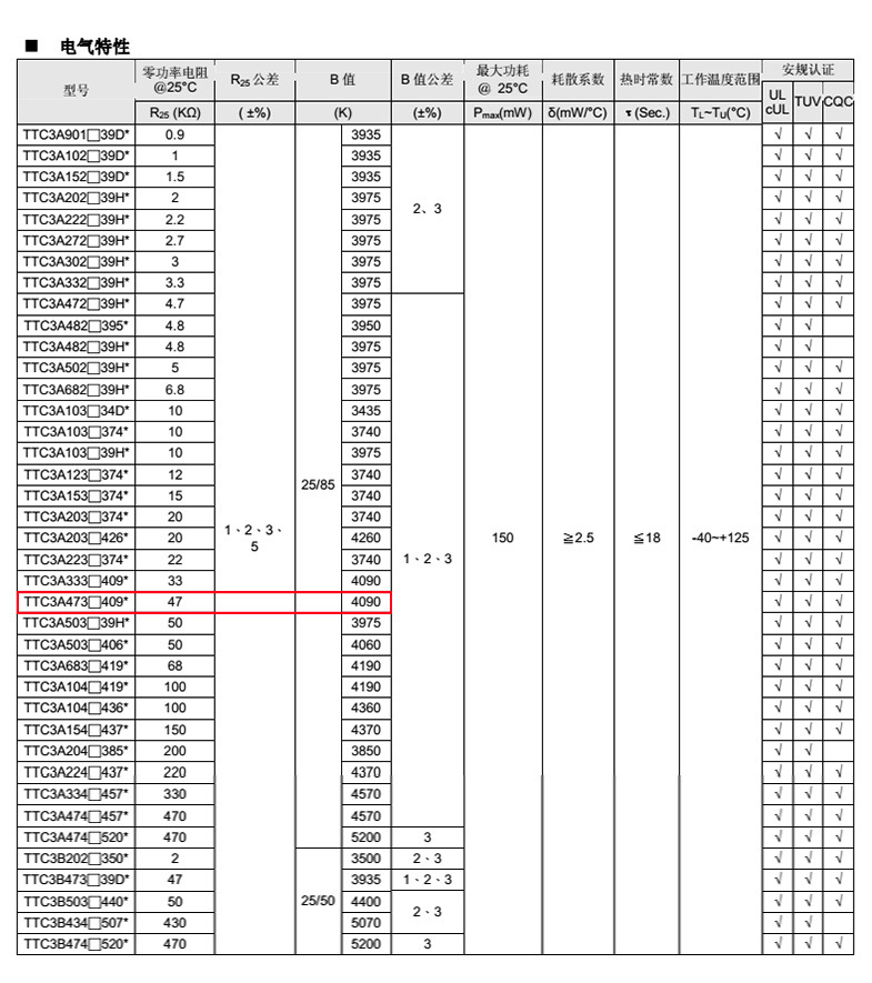 熱敏電阻型號: