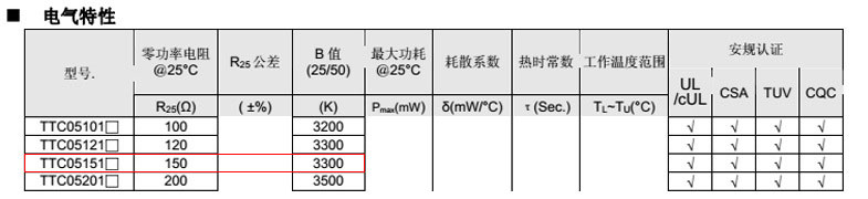 熱敏電阻型號: