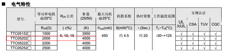 熱敏電阻型號: