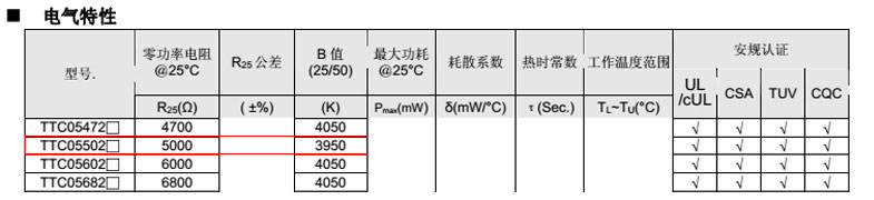 熱敏電阻型號: