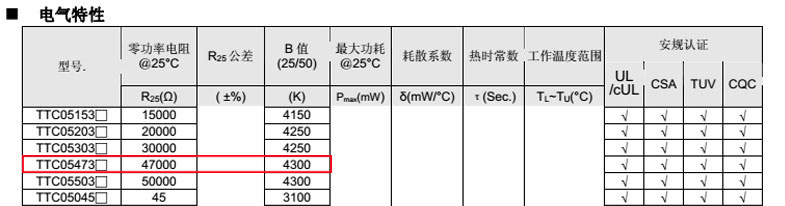 熱敏電阻型號: