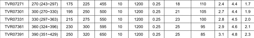 壓敏電阻片徑: Φ7mm 標(biāo)稱壓敏電壓(@1mADC): 360V(324~396)